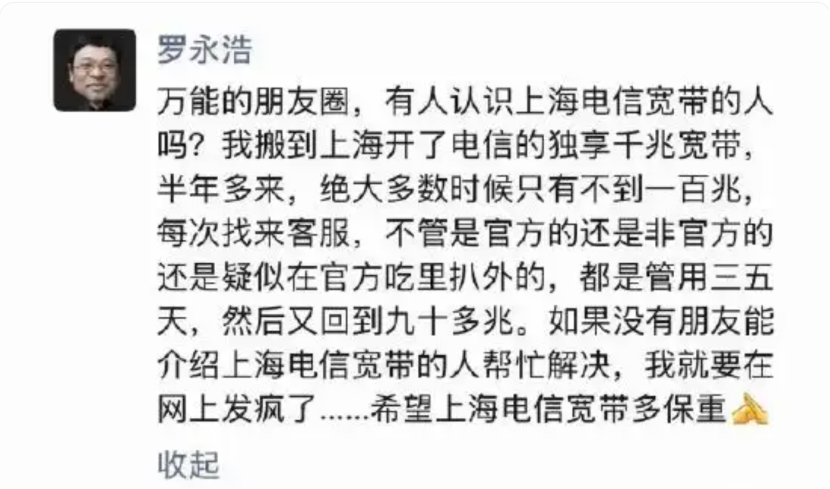 罗永浩似乎“疯了”,正如他在吐槽上海电信网速时说,要是得不到解决,“我就要在网上发疯了”。