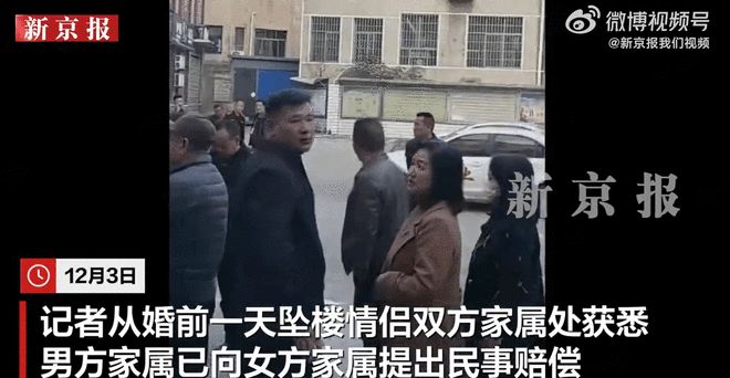 12月3日 ,记者从婚前一天坠楼情侣双方家属处获悉,男方家属已向女方家属提出民事赔偿。男方家属告诉记者,他们认为女方在安全防护和救治上存在失责,律师初步核算的赔偿金额和女方应归还财物超百万元。女方家属告诉记者,他们也是受害者,不认可男方提出的民事赔偿。11月24日,湖南双峰县一对情侣结婚前一天在女方家先后坠楼身亡。据双峰联合调查组通报,男方系意外坠楼身亡,女方系自主坠落身亡。(记者:赵露 制作:罗伟伟)
