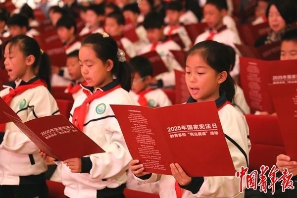 本报讯(中青报·中青网记者 刘言)“我宣誓:忠于《中华人民共和国宪法》,拥护宪法权威,履行公民义务……努力成为党的好孩子、新时代的好少年,为实现中华民族伟大复兴的中国梦时刻准备着!”国家宪法日前夕,北京市海淀区9所学校的200余名师生代表,走进北京市海淀区人民法院(以下简称“海淀法院”),在一堂生动的法治课后,面向国徽庄严宣誓,让法治信仰在心中生根发芽。